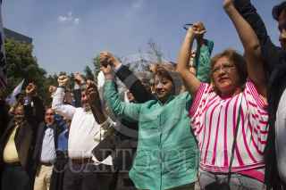 MÉXICO, D.F., 19ENERO2015.- El Partido de la Revolución Democrática, arranca las precampañas de sus candidatos para contender por un cargo o una Delegación en el Distrito Federal. Mas de 40 precandidatos se reunieron en la Plaza de la Solidaridad para iniciar sus actividades en busca de un puesto en las próximas elecciones. FOTO: ISABEL MATEOS /CUARTOSURO.COM