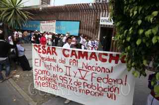 MÉXICO, D.F. 19ENERO2015.-Indígenas Chiapanecos se manifestaron a las afueras de las instalaciones del CEN del PRI, debido a que no los dejaban a ingresar para tener una audiencia con el presidente del Partido Cesar Camacho. FOTO: SAÚL LÓPEZ /CUARTOSCURO.COM