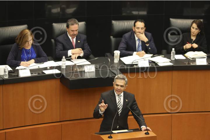 MÉXICO D.F. 20ENERO2015.- Miguel Ángel Mancera, jefe de gobierno del Distrito Federal acompañado de, Oscar Kaufmann, coordinador de comunicacion social del D.F. a la salida de las Audiencias Publicas en Materia de Seguridad y Justicia realizado en el Senado de la República. FOTO SAÚL LOPEZ /CUARTOSCURO.COM