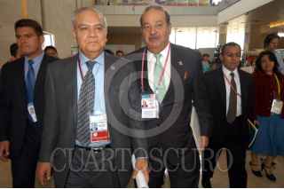 MÉXICO D.F. 20 MARZO 2006 .- El empresario Carlos Slim y Carlos Jaime Jacques, director de CONAGUA, participó en el IV Foro Mundial del Agua México 2006, ahí habló de propuestas y soluciones para acabar con la escacez y la mala distribución del vital líquido. FOTO:Carlos Guzmán/CUARTOSCURO.COM