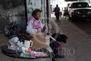 MÉXICO, D.F., 20ENERO2015.- Una mujer que vende revistas usadas se fuma un cigarro mientras esta en espera de algún cliente. FOTO: GUILLERMO PEREA /CUARTOSCURO.COM