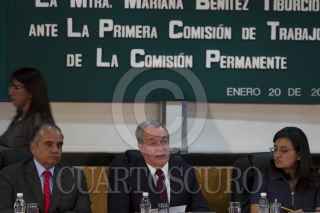 MÉXICO, D.F. 20ENERO2015.- Monte Alejandro Rubido García, comisionado nacional de Seguridad, acompañado de Marina Benítez Tiburcio, subprocuradora Jurídica y de Asuntos Internacionales de la PGR, comparecieron ante legisladores pertenecientes a la primera comisión de trabajo de la comisión Permanente en la Cámara de Diputados. FOTO: GUILLERMO PEREA /CUARTOSCURO.COM