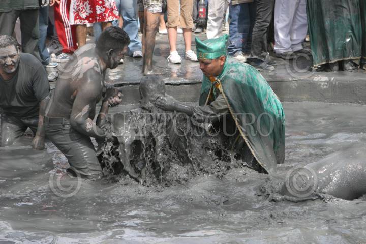 ESPINAZO, MUNICIPIO DE MINA, NUEVO LEON.20.MARZO.2006.- Una materia y su asistente sumergen a uno de los creyentes que acude a su curación en el charquito durante las fiestas del santo del Niño Fidencio. FOTO: PEDRO VALTIERRA/CUARTOSCURO.COM