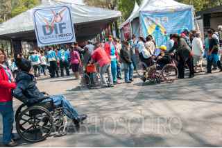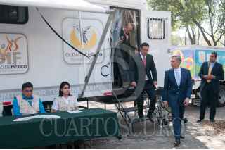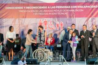 MÉXICO, D.F., 21ENERO2015.- Miguel Ángel Mancera, jefe de gobierno capitalino, encabezó el evento "Conociendo y reconociendo a las personas con discapacidad" en la primera sección del Bosque de Chapultepec, donde fueron presentadas las nuevas unidades móviles de rehabilitación y la entrega de ayudas técnicas, para que las personas discapacitadas puedan tener mayor posibilidad de buscar lugares donde puedan ser atendidas, en especial, las personas con bajos recursos. FOTO: DIEGO SIMÓN SÁNCHEZ /CUARTOSCURO.COM