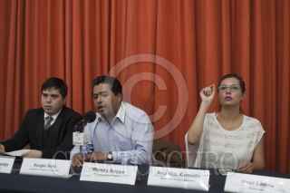MÉXICO, D.F., 21ENERO2015.- Guillermo Naranjo, abogado de la Liga 1 de Diciembre, Sergio Soto, abogado de Bryan y Jacqueline, además de Wendy Reyes, hermana de Bryan Reyes, hablaron de la situación jurídica de Jacqueline Santana López y Bryan Reyes Rodríguez ambos estudiantes de la UNAM quienes fueron detenidos el 15 de noviembre de 2014 acusados de robarles $500 con un cuchillo a policías federales. Sus defensores señalan varias irregulares como la prueba dactiloscópica del cuchillo en donde no hay ninguna huella y la misteriosa desaparición del billete de a 500 pesos, además de que al momento de su detención fueron sometidos a tortura física y psicológica. FOTO: MOISÉS PABLO /CUARTOSCURO.COM