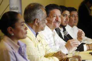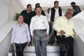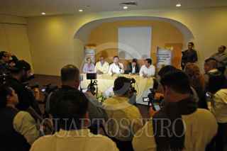 GUADALAJARA, JALISCO, 22ENERO2015.-El Presidente Nacional del Partido de la Revolución Democrática (PRD) Carlos Navarrete Ruíz, estuvo de gira por el estado, en donde ofreció una conferencia de prensa en la que hablo sobre los próximos comicios electorales. El dirigente nacional estuvo acompañado de Raúl Vargas López, Presidente del Comité Estatal así como de otras personalidades políticas de su partido. FOTO: FERNANDO CARRANZA GARCIA / CUARTOSCURO.COM