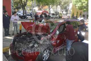 MÉXICO, D.F., 22ENERO2015.- Cuatro heridos fue el saldo que dejó el choque entre una camioneta y un automóvil compacto en el cruce de la calles 5 de febrero y Obrero Mundial de la coloni Álamos. FOTO: ARMANDO MONROY /CUARTOSCURO.COM