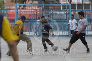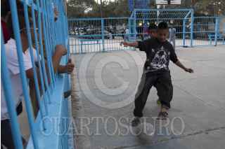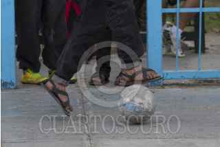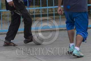 MÉXICO, D.F., 22ENERO2015.- Un grupo de jóvenes juega futbol en chanclas en una cancha de futbol rápido ubicada en el Parque de los Venados. FOTO: GUILLERMO PEREA /CUARTOSCURO.COM