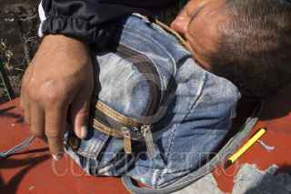 MEXICO, D.F., 24ENERO2015.- Despreocupado de la vida a su alrededor, un hombre duerme tranquilo sobre una banca en la Plaza de la Ciudadela. FOTO: DAVID POLO /CUARTOSCURO.COM