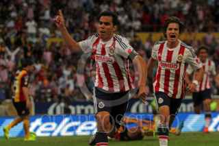 GUADALAJARA, JALISCO. 25ENERO2015.- El jugador de Chivas Omar Bravo, celebra su anotación durante el partido entre Leones Negros de la Universidad de Guadalajara y las Chivas de Guadalajara en el Estadio Jalisco, en encuentro correspondiente a la Jornada 3 del Torneo Clausura 2015 de la Liga MX, donde el marcador final fue de 1-1. FOTO: FERNANDO CARRANZA GARCIA/CUARTOSCURO.COM