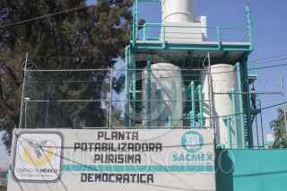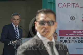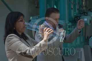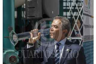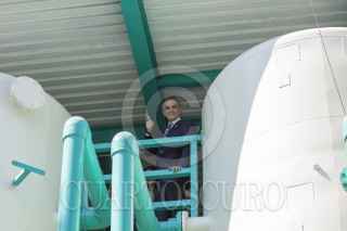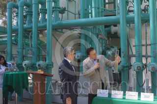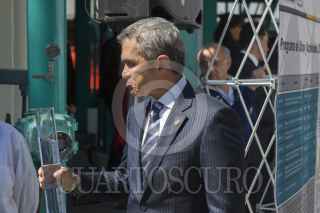 MÉXICO, D.F., 27ENERO2015.- El Jefe de Gobierno Miguel Ángel Mancera reinauguró la planta potabilizadora Purisima en la delegación Iztapalapa. En la imagen un escolta vigila recelosamente al mandatario capitalino. FOTO: MOISÉS PABLO /CUARTOSCURO.COM