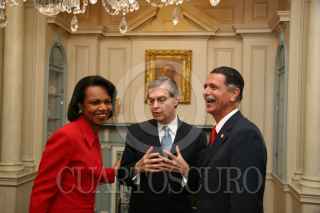 WASHINGTON, E. U. A. 24MARZO2006.- En el marco de los trabajos de la Comisión Binacional México-Estados Unidos, los secretarios de Gobernación, Carlos Abascal Carranza, y de Relaciones Exteriores, Luis Ernesto Derbez, se reunieron con la secretaria de Estado norteamericana, Condoleezza Rice. FOTO:SEGOB/CUARTOSCURO.COM