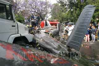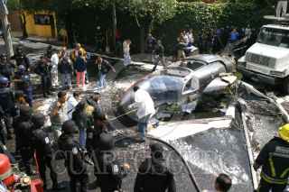 MÉXICO D.F. 25MARZO2006.- Un helicóptero Modelo A-109E, con matricula XAVEN, de la empresa AUGUSTA, Service Cente México, en el que viajaba el ex futbolista argentino Jorge Valdano, cayó en Montes Urales, en la colonia Lomas de Chapultepec. FOTO: Diego Gallegos/CUARTOSCURO.COM