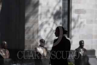 MÉXICO, D.F., 28ENERO2015.- Una elemento del Estado Mayor resguarda la seguridad del evento en donde el Jefe del Ejecutivo Enrique Peña Nieto encabezó la presentación del programa de prevención y atención de adicciones que se realizó en la secretaría de Salud. FOTO: MOISÉS PABLO /CUARTOSCURO.COM