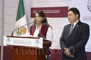 MÉXICO, D.F., 28ENERO2015.- El senador del PAN Daniel Ávila Ruiz y la diputada del PRD Graciela Saldaña en conferencia de prensa, anunciaron que la clausura del proyecto del centro comercial y de negocios Dragon Mart, fue tardío por parte del gobierno federal. FOTO: SAÚL LÓPEZ /CUARTOSCURO.COM