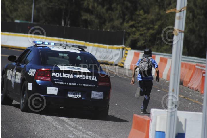 CHILPANCINGO, GUERRERO, 28ENERO2015.-Jóvenes normalistas fueron detenidos cuando intentaban tomar la caseta de cobro de peaje de la Autopista del Sol. En Palo Blanco, se inició una persecución entre policías federales y normalista que a bordo de dos camionetas una tipo picop blanca y una urban, llegaron a la caseta, sin embargo los policías le pararon el alto apuntándelos con un arma corta. El saldo fue de 14 jóvenes detenidos, entre ellos dos mujeres. Los normalistas fueron en llevado a las instalaciones de la Policía Federal con sede en Chilpancingo en avenida de la Juventud , donde se congregaron sus compañeros y maestros de la Ceteg, para pedir su libertad, que se dio después de hora y media de espera. FOTO: JOSÉ I. HERNÁNDEZ / CUARTOSCURO.COM