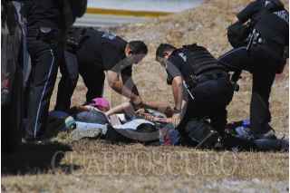 CHILPANCINGO, GUERRERO, 28ENERO2015.-Jóvenes normalistas fueron detenidos cuando intentaban tomar la caseta de cobro de peaje de la Autopista del Sol. En Palo Blanco, se inició una persecución entre policías federales y normalista que a bordo de dos camionetas una tipo picop blanca y una urban, llegaron a la caseta, sin embargo los policías le pararon el alto apuntándelos con un arma corta. El saldo fue de 14 jóvenes detenidos, entre ellos dos mujeres. Los normalistas fueron en llevado a las instalaciones de la Policía Federal con sede en Chilpancingo en avenida de la Juventud , donde se congregaron sus compañeros y maestros de la Ceteg, para pedir su libertad, que se dio después de hora y media de espera. FOTO: JOSÉ I. HERNÁNDEZ / CUARTOSCURO.COM