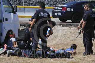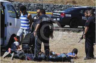 CHILPANCINGO, GUERRERO, 28ENERO2015.-Jóvenes normalistas fueron detenidos cuando intentaban tomar la caseta de cobro de peaje de la Autopista del Sol. En Palo Blanco, se inició una persecución entre policías federales y normalista que a bordo de dos camionetas una tipo picop blanca y una urban, llegaron a la caseta, sin embargo los policías le pararon el alto apuntándelos con un arma corta. El saldo fue de 14 jóvenes detenidos, entre ellos dos mujeres. Los normalistas fueron en llevado a las instalaciones de la Policía Federal con sede en Chilpancingo en avenida de la Juventud , donde se congregaron sus compañeros y maestros de la Ceteg, para pedir su libertad, que se dio después de hora y media de espera. FOTO: JOSÉ I. HERNÁNDEZ / CUARTOSCURO.COM