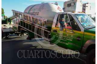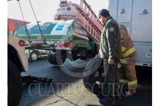 MÉXICO, D.F., 28ENERO2015.- La llanta trasera de una pipa se salio cuando circulaba en la av Tlalpan a la altura de Xola golpeando a una mujer y un microbus. FOTO: ARMANDO MONROY /CUARTOSCURO.COM