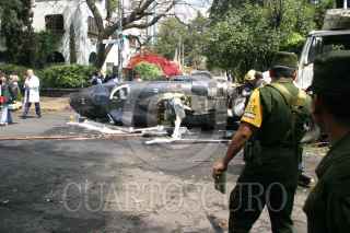 MÉXICO D.F. 25MARZO2006.- Fragmentos del helicóptero que se desplomó en las calles de Montes Urales en la colonia Lomas de Chapultepec, quedaron regados a lo largo de la zona en donde cayó la aeronave. FOTO: Diego Gallegos/CUARTOSCURO.COM
