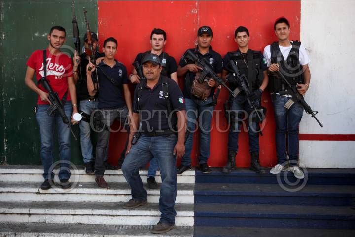 LOS REYES, MICHOACÁN, 28ENERO2015.- El día de hoy más de 100 elementos adscritos a la Fuerza Rural, festejaron el primer aniversario de haber ingresado a la cabecera municipal. Los elementos realizaron un recorrido por las principales calles en caravana y finalizaron con un evento en donde algunos de los comandantes se dirigieron al pueblo. FOTO: ALAN ORTEGA /CUARTOSCURO.COM