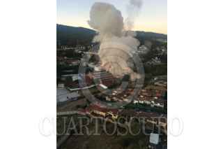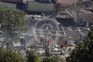 MEXICO, D.F., 29ENERO2015.- Un saldo preliminar de 4 muertos y más de 50 heridos hasta el momento, es lo que ha dejado una explosión ocasionada por una pipa de gas en el Hospital Materno Infantil de Cuajimalpa. De acuerdo con declaraciones del chofer de la pipa, la manguera del combustble presentaba una fuga, lo que incendió el gas y posteriormente estalló el cilindro. El hospital quedó prácticamente reducido a escombros. FOTO: SAÚL LÓPEZ /CUARTOSCURO.COM