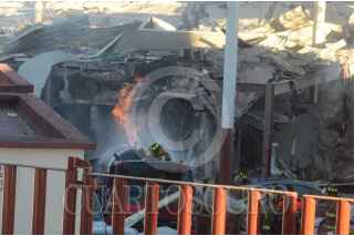 MEXICO, D.F., 29ENERO2015.- Un saldo preliminar de 7 muertos y más de 35 heridos hasta el momento, es lo que ha dejado una explosión ocasionada por una pipa de gas en el Hospital Materno Infantil de Cuajimalpa. De acuerdo con declaraciones del chofer de la pipa, la manguera del combustble presentaba una fuga, lo que incendió el gas y posteriormente estalló el cilindro. El hospital quedó practicamente reducido a escombros y a varias horas del siniestro aún quedaba combustible consumiendose en el cilindro de la pipa. FOTO: ARMANDO MONROY /CUARTOSCURO.COM