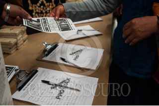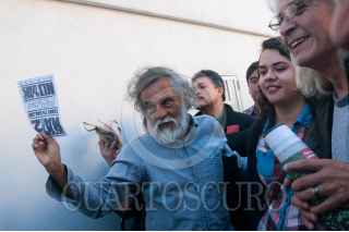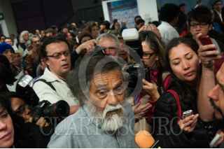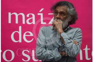 MÉXICO, D.F., 29ENERO2015.- Inauguración de la exposición del pintor oaxaqueño Francisco Toledo, "El maíz de nuestro sustento", en el metro Zapata, muestra que defiende el maíz nacional sobre el transgénico. Durante la inauguración se invito a la gente a juntar firmas y unirse a la campaña "No al maíz transgénico" del artista plástico, en oposición al grano de maíz genéticamente modificado. FOTO: DIEGO SIMÓN SÁNCHEZ /CUARTOSCURO.COM