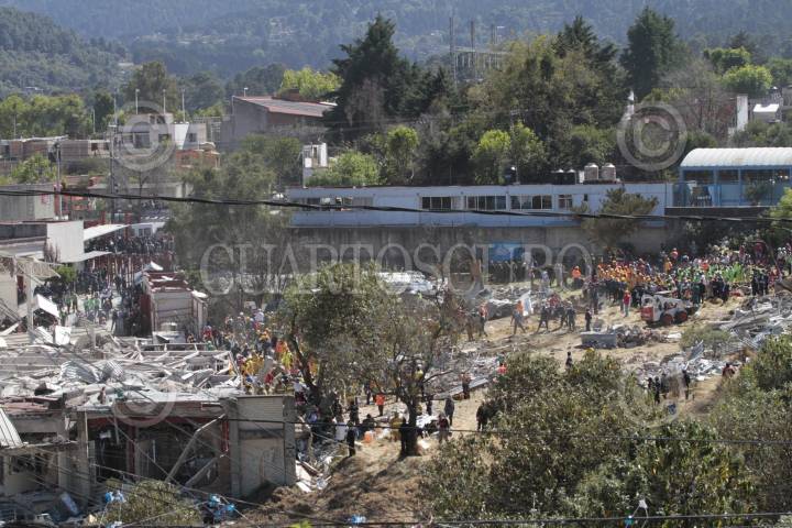 MEXICO, D.F., 29ENERO2015.- Un saldo preliminar de 7 muertos y más de 50 heridos hasta el momento, es lo que ha dejado una explosión ocasionada por una pipa de gas en el Hospital Materno Infantil de Cuajimalpa. De acuerdo con declaraciones del chofer de la pipa, la manguera del combustble presentaba una fuga, lo que incendió el gas y posteriormente estalló el cilindro. El hospital quedó prácticamente reducido a escombros. FOTO: IVÁN STEPHENS /CUARTOSCURO.COM