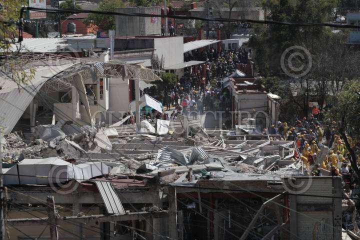 MEXICO, D.F., 29ENERO2015.- Un saldo preliminar de 7 muertos y más de 50 heridos hasta el momento, es lo que ha dejado una explosión ocasionada por una pipa de gas en el Hospital Materno Infantil de Cuajimalpa. De acuerdo con declaraciones del chofer de la pipa, la manguera del combustble presentaba una fuga, lo que incendió el gas y posteriormente estalló el cilindro. El hospital quedó prácticamente reducido a escombros. FOTO: IVÁN STEPHENS /CUARTOSCURO.COM