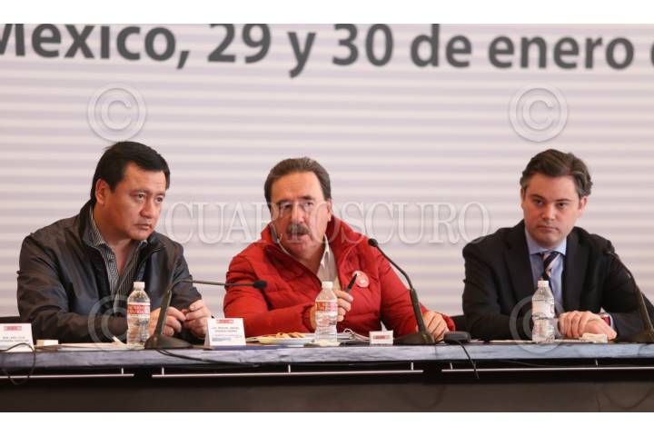 OCOYOACAC, ESTADO DE MÉXICO, 29ENERO2015.- Miguel Osorio Chong, Emilio Gamboa Patron a su salida de la VI reunión plenaria de los senadores del PRI realizado en el municipio de Ocoyoacac. FOTO: SAÚL LÓPEZ /CUARTOSCURO.COM