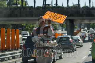 MÉXICO, D.F., 29ENERO2015.- Vendedor de pistaches sobre el arroyo vehicular del Circuito Interior FOTO: MOISÉS PABLO /CUARTOSCURO.COM