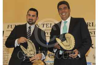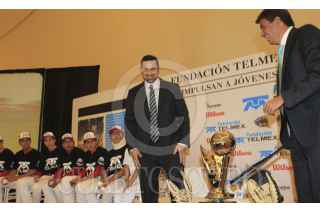 MÉXICO, D.F., 29ENERO2015.- El beisbolista mexicano Adrián González, y Arturo Elías Ayub, director de Fundación Telmex, presentaron la nueva edición de la Liga infantil Telmex de beisbol homónima del pelotero de los Dodgers de Los Ángeles. FOTO: ISAAC ESQUIVEL /CUARTOSCURO.COM