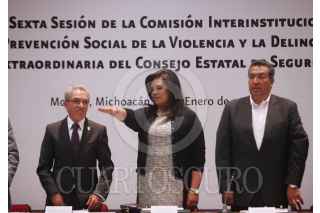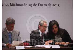 MORELIA, MICHOACÁN, 29ENERO2015.- Salvador Jara Guerrero, encabezó la instalación de la Comisión Interinstitucional para la prevención Social de la Violencia y la Delincuencia, se dio a conocer durante el evento que el gobierno federal destinará este año 89 millones de pesos para la operación de programas y acciones. Durante la sexta sesión de dicha Comisión, el titular del Ejecutivo tomó protesta al secretario de Gobierno Jaime Esparza Cortina y a Anna Lilia Ramírez, como presidente y secretaria Ejecutiva. FOTO: ALAN ORTEGA /CUARTOSCURO.COM
