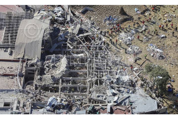 MEXICO, D.F., 29ENERO2015.- Un saldo preliminar de 2 muertos y más de 50 heridos hasta el momento, es lo que ha dejado una explosión ocasionada por una pipa de gas en el Hospital Materno Infantil de Cuajimalpa. De acuerdo con declaraciones del chofer de la pipa, la manguera del combustble presentaba una fuga, lo que incendió el gas y posteriormente estalló el cilindro. El hospital quedó prácticamente reducido a escombros. FOTO: IVÁN STEPHENS /CUARTOSCURO.COM