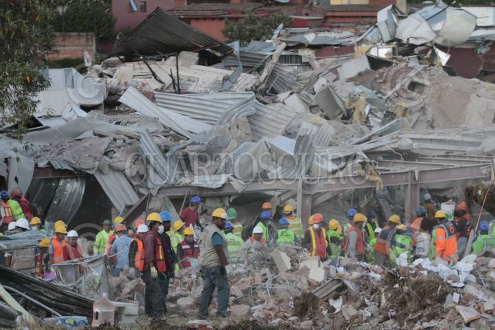 MEXICO, D.F., 29ENERO2015.- Un saldo preliminar de 2 muertos y más de 50 heridos hasta el momento, es lo que ha dejado una explosión ocasionada por una pipa de gas en el Hospital Materno Infantil de Cuajimalpa. De acuerdo con declaraciones del chofer de la pipa, la manguera del combustble presentaba una fuga, lo que incendió el gas y posteriormente estalló el cilindro. El hospital quedó prácticamente reducido a escombros. FOTO: IVÁN STEPHENS /CUARTOSCURO.COM
