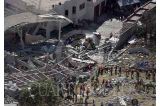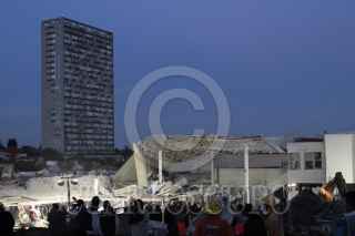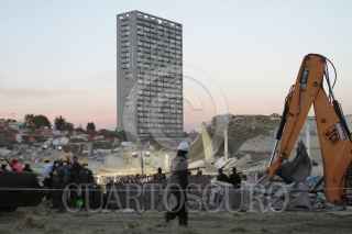 MEXICO, D.F., 29ENERO2015.- Un saldo preliminar de 2 muertos y más de 50 heridos hasta el momento, es lo que ha dejado una explosión ocasionada por una pipa de gas en el Hospital Materno Infantil de Cuajimalpa. De acuerdo con declaraciones del chofer de la pipa, la manguera del combustble presentaba una fuga, lo que incendió el gas y posteriormente estalló el cilindro. El hospital quedó prácticamente reducido a escombros. FOTO: IVÁN STEPHENS /CUARTOSCURO.COM