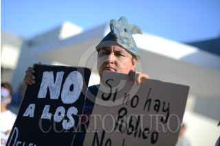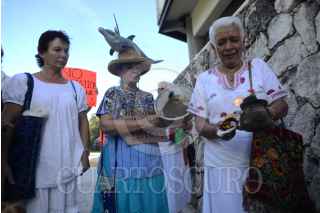 CANCÚN, QUINTANA ROO, 29ENERO2015.- Integrantes de México Conservacón realizaron una protesta pacífica a las afueras del parque acuatico "Wets and Wild" de la zona hotelera de Cancún. En la protesta se contó con la participación de Richar O´Barry, activistas internacionalmente reconocido, quien junto con otras 50 personas gritaron consignas para solicitar el cierre de los delfinarios en México. FOTO: ELIZABETH RUIZ /CUARTOSCURO.COM
