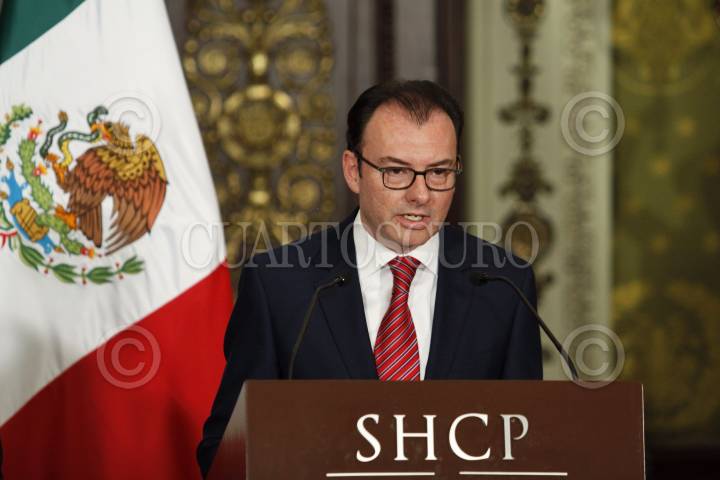 MÉXICO, D.F. 30ENERO2015.- Luis Videgaray Caso, secretario de Hacienda, anunció un recorte al gasto público federal para el año 2015, además quedan cancelado los proyectos de tren Peninsular en Quintana Roo y el tren México-Querétaro, en un anuncio ofrecido en el Palacio Nacional. FOTO: MOISES PABLO /CUARTOSCURO.COM