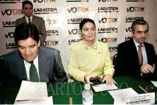 José Guadarrama, Dulce María Sauri y Carlos Almada hablaron en conferencia sobre la estrategia de campaña para Francisco Labastida el próximo 2 de julio. FOTO: Victoria Valtierra/CUARTOSCURO