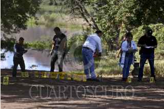 CULIACÁN, SINALOA, 01FEBRERO2015.- Una persona de sexo masculino fue localizada sin vida a la orilla del dique Batamonte, la víctima se encuentra sin identificar y presenta varios impactos de arma de fuego, peritos de la Procuraduría General de Justicia levantaron como evidencia decenas de casquillos para fusil AK-47 y R-15. FOTO: RASHIDE FRIAS /CUARTOSCURO.COM