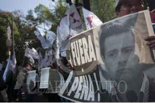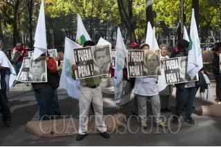 MÉXICO, D.F., 02FEBRERO2015.- Decenas de integrantes del Congreso Popular y la Organización Nacional del Poder Popular organizaron un mitín afuera de la Procuraduría General de la República (PGR) para dar respuesta a la declaración del procurador Jesús Murillo Karam de cerrar el caso de Ayotzinapa después de afirmar que los normalistas fueron incinerados en un basurero de Colula. Los manifestantes exigieron no dar carpetazo al caso y manifestaron su apoyo a los padres de los normalistas para seguir con la búsqueda de los desaparecidos. FOTO: DIEGO SIMÓN SÁNCHEZ /CUARTOSCURO.COM