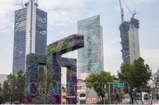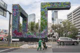 MÉXICO, D.F., 02FEBRERO2015.- Una colorida estructura como jardín vertical adorna la avenida Chapultepec. En los ultimos años se ha buscado incrementar los espacios verdes por toda la ciudad ante el crecimiento urbano que tiene como consecuencias la contaminación ambiental. FOTO: DIEGO SIMÓN SÁNCHEZ /CUARTOSCUR.COM