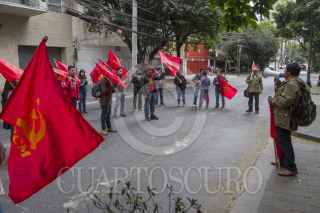 MÉXICO, D.F., 02FEBRERO2015.- Ante un dispositivo de seguridad, alrededor de 30 personas, convocadas por la Federación de Jóvenes Comunistas, se manifestaron en la Casa Guerrero, en conmemoración por el 43 aniversario del asesinato del luchador social Genaro Vázquez. FOTO: ISAAC ESQUIVEL /CUARTOSCURO.COM