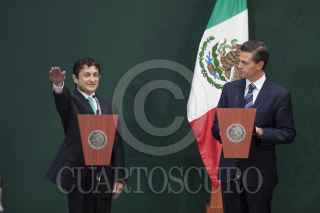 MÉXICO, D.F., 03FEBRERO2015.- Enrique Peña Nieto, Presidencia de la República, anunció en mensaje en la residencia oficial de Los Pinos que Virgilio Andrade Martínez, será el nuevo Secretario de la Función Pública y su primera instrucción será investigar si hubo un conflicto de intereses en los casos de adquisición inmobiliaria de la Primera Dama Angélica Rivera, el secretario de Hacienda Luis Videgaray y del propio Jefe del Ejecutivo. FOTO: MOISÉS PABLO /CUARTOSCURO.COM