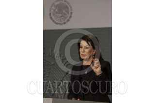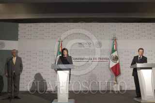 MÉXICO, D.F., 03FEBRERO2015.- Lorena Martínez, titular de la Profeco, ofreció conferencia de prensa en en el Club Naval en donde abordo el desorden normativo con el cual operan las casas de empeño, la acompañaron Roberto Calleja, coordinador operativo de Comunicación Social de la Presidencia de la República y el vocero de la Presidencia de la República Eduardo Sánchez. FOTO: MOISÉS PABLO /CUARTOSCURO.COM