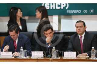 MÉXICO, D.F., 03FEBRERO2015.- Fernando Aportela Subsecretario de Hacienda, Fernando Galindo, Subsecretario de Egresos y el Procurador Fiscal de la Federación, Javier Laynez, se reunieron ante la Comisión de Presupuesto y Cuenta Pública de la Cámara de Diputados para aclarar las medidas de ajuste al gasto público durante 2015, anunciado el pasado el viernes. FOTO: SAÚL LÓPEZ /CUARTOSCURO.COM