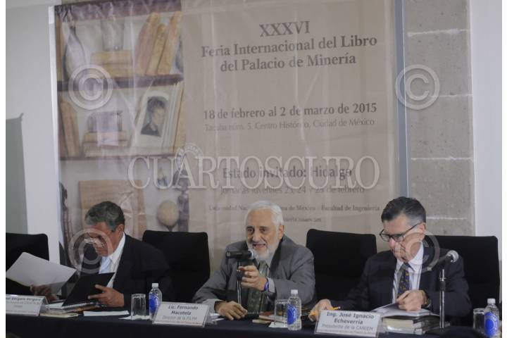 MÉXICO, D.F., 04FEBRERO2015.- Fernando Macotela, director general de la Feria Internacional del Libro en Palacio de Minería, encabezó la conferencia de prensa para presentar la edición XXXVI de la Feria Internacional del Libro en el Palacio de Minería, que tendrá fecha del 18 de febrero al 2 de marzo donde expondrán más de 500 editoriales, e Hidalgo será el estado invitado. FOTO: DIEGO SIMÓN SÁNCHEZ /CUARTOSCURO.COM