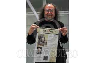 MÉXICO, D.F., 04FEBRERO2015.- Víctor Roura, durante la presentación del nuevo proyecto de periodismo cultural "La Digna Metáfora, dirigido por Roura. La publicación catorcenal busca la honestidad y la dignidad, tratando de decir las cosas que poca gente se atreve a decir, hacer periodismo cultural de manera seria, ya que en el país son contados los que lo realizan, comentaron los participantes. FOTO: ADOLFO VLADIMIR /CUARTOSCURO.COM