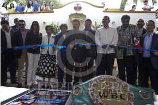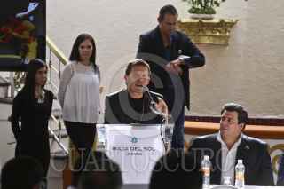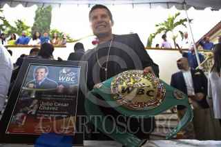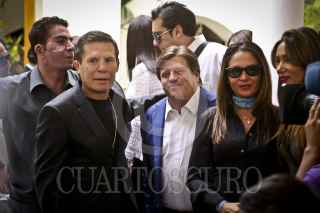 CULIACÁN, SINALOA 05FEBRERO2015.- El campeón de boxeo, Julio Cesar Chavez encabezo el evento inaugural de la clínica baja del sol la cual, funge como centro de rehabilitación para jóvenes con problemas de adicción a las drogas, varias personalidades como Oscar de la Hoya, Rubén Castillo ¨El Azabache¨, Mauricio Sulaiman, Yolanda Andrade, el promotor estadounidense ¨Don King¨, el campeón de boxeo Humberto ¨La Chiquita González¨ el director técnico de la selección mexicana Miguel¨El Piojo¨Herrera el ¨Hijo del Santo¨entre otros, acompañaron al ídolo mexicano en el corte de listón para mas tarde realizar la develación de su estatua como homenaje en el parque revolución. FOTO: RASHIDE FRIAS / CUARTOSCURO.COM